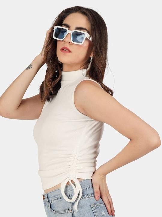 High Neck Sleeveless Tie-Ups Ruched Regula